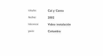 | En Cal y Canto, último proyecto de Clemencia Echeverri podría decirse que el señalamiento central se lleva a cabo a partir del entrabe de múltiples registros de experiencias urbanas. En situación fragmentaria e inestable se entrecruzan imágenes que se refieren a la manifestación callejera tanto como a la fiesta. Ana María Lozano, Aparte del catálogo de Cal y Canto.